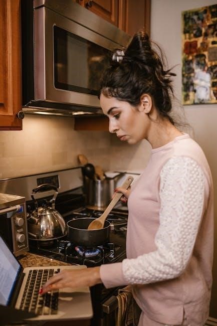 Your Oster microwave oven simplifies defrosting and cooking with precise time and power settings․ Use the preset defrost function, which calculates time based on weight or frozen food type․ Always place food in a microwave-safe container and cover to prevent splatters․ For even thawing, check and flip food halfway through the defrost cycle․ Cooking times vary depending on power levels and food quantity, so adjust as needed․ Refer to the manual or manufacturer’s guide for specific cooking times to ensure optimal results and avoid overcooking․